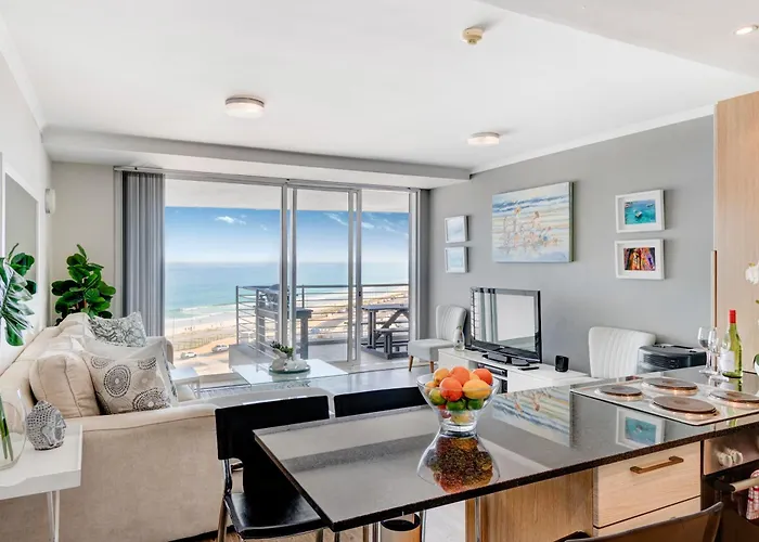 The spacious 2-bedroom Cape Town, Blouberg Beachfront Luxury Apt - Kite Beach Bloubergstrand lies in the Blouberg Beach district of Bloubergstrand and offers swift access to the beach, which is merely a 7-minute walk away. Situated in Bloubergstrand, a mere 1.6 km from the indoor Bayside Mall, this 88 m² apartment features a terrace with a swimming pool.